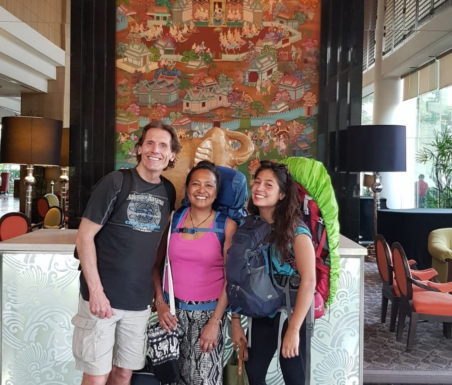 De wekker stond om 5.15 want ik wilde 6.00 uur op de airport zijn. Ik moest namelijk nog een nieuw ticket krijgen en extra betalen aan de balie omdat ik mijn ticket had gewijzigd van de 16e naar de 18e, dus ik wilde in ieder geval drie uur van tevoren aanwezig zijn. Eenmaal op de airport bleek dat de balie pas een uur voor de vlucht open zou gaan, dus het vroege opstaan was niet nodig geweest… Maar ach, ik heb een heel voorspoedige vlucht gehad! In Bangkok ben ik met de Skytrain naar het hotel gegaan waar mijn ouders verblijven. Wat een luxe hotel! Mijn bagage werd naar de kamer gebracht op de 17e verdieping. Ook een heel fijn zwembad op het dak! Ik heb een thaise massage genomen en de rest van de middag heerlijk gerelaxt in het zwembad en de kamer van het hotel. ’s Avonds had ik afgesproken met Jesse en Alexei die ik kende uit Phnom Penh en waar ik al een keer eerder in Bangkok mee had afgesproken. We hebben samen wat gegeten, superleuk om ze weer te zien! Eind van de avond kwam ik thuis en zag ik mijn ouders weer, dat was fijn! We hebben wel veel contact gehouden in de tussentijd dus echt lang geleden leek het niet. Heb zin in de komende dagen!