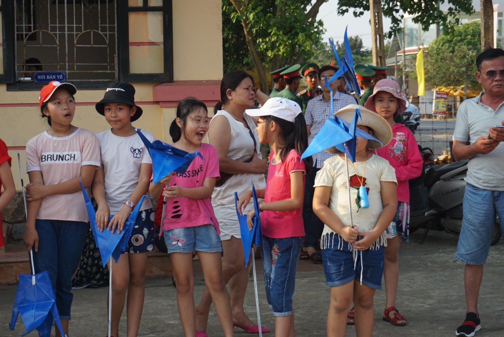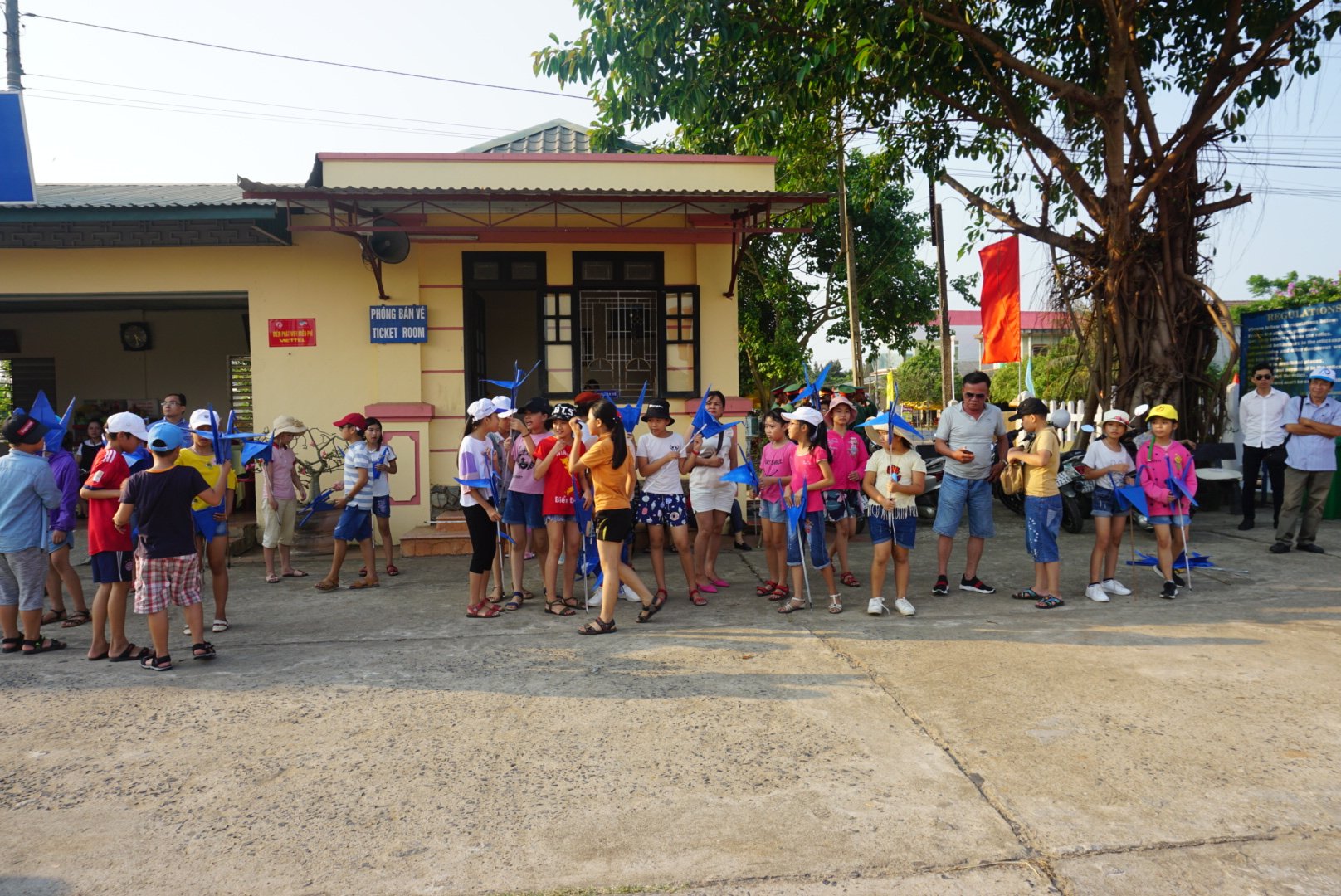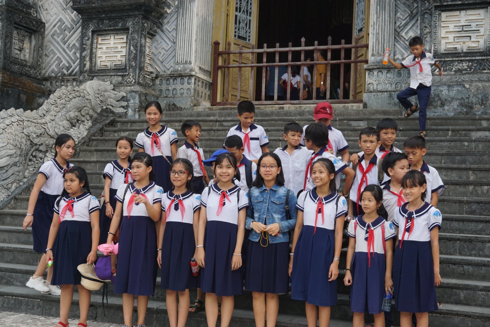 Halverwege de rit neemt de chauffeur even pauze en we stoppen op een plek waar allemaal Vietnamese kinderen aan het zingen zijn in een uniform. Ze zijn zo blij en begroeten ons heel enthousiast. Leuk om te zien! Eind van de dag komen we bij het hostel ‘Nguyen Shack’ waar we avondeten en even bijkomen.