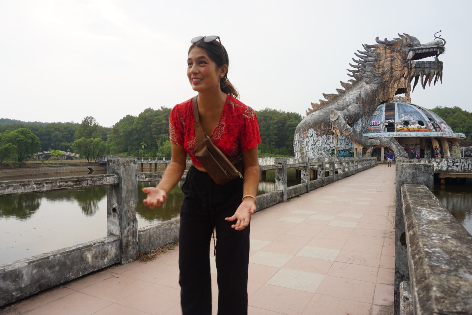 Hue is niet een heel grote stad, binnen één dag kun je alle hoogtepunten wel bezoeken. Met de scooter zijn we naar het verlaten waterpark geweest, de tombe van Khai Dinh, een pagoda en de citadel geweest. Het begint nu al wat regenachtiger te worden, betekent dat het regenseizoen in aantocht is…