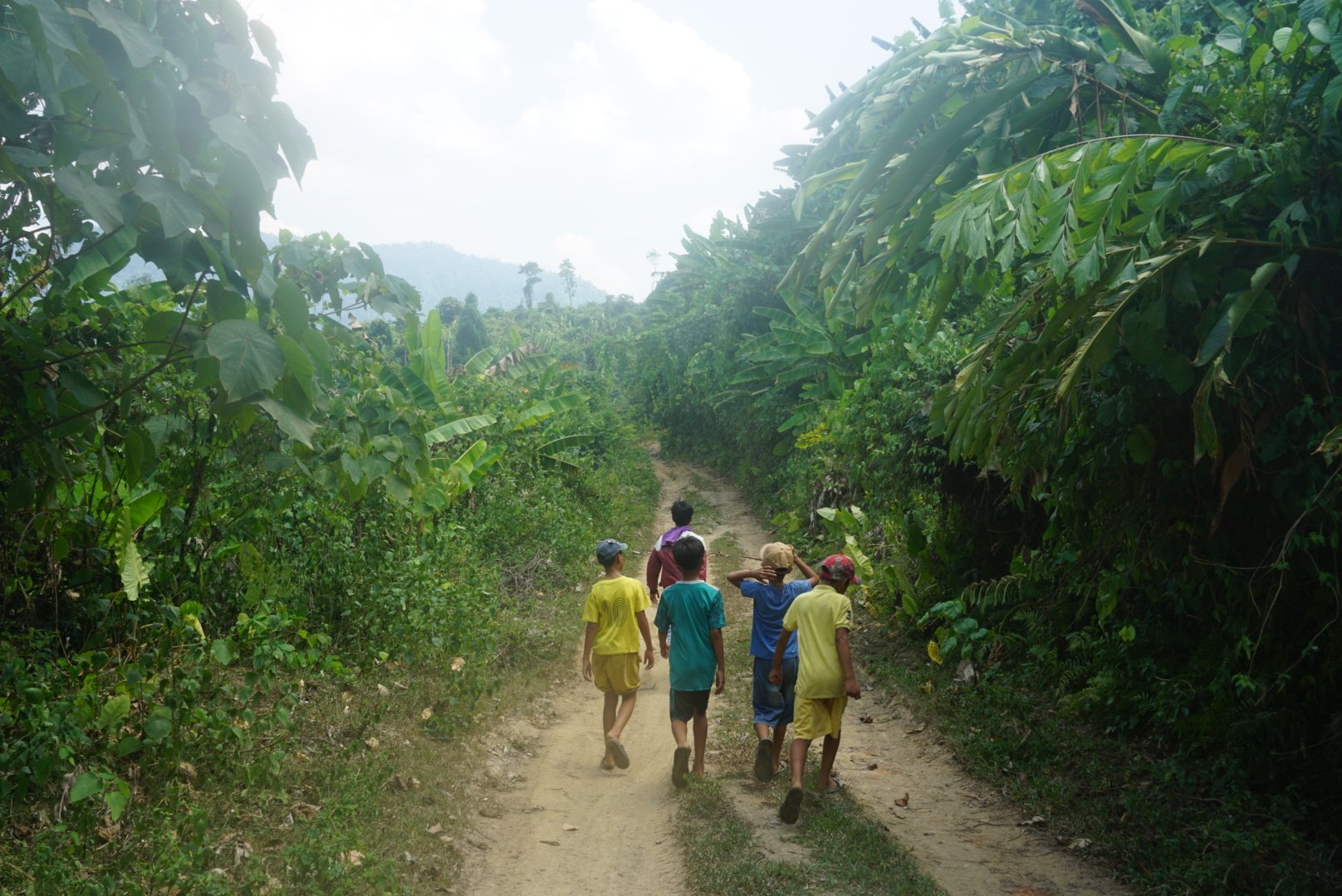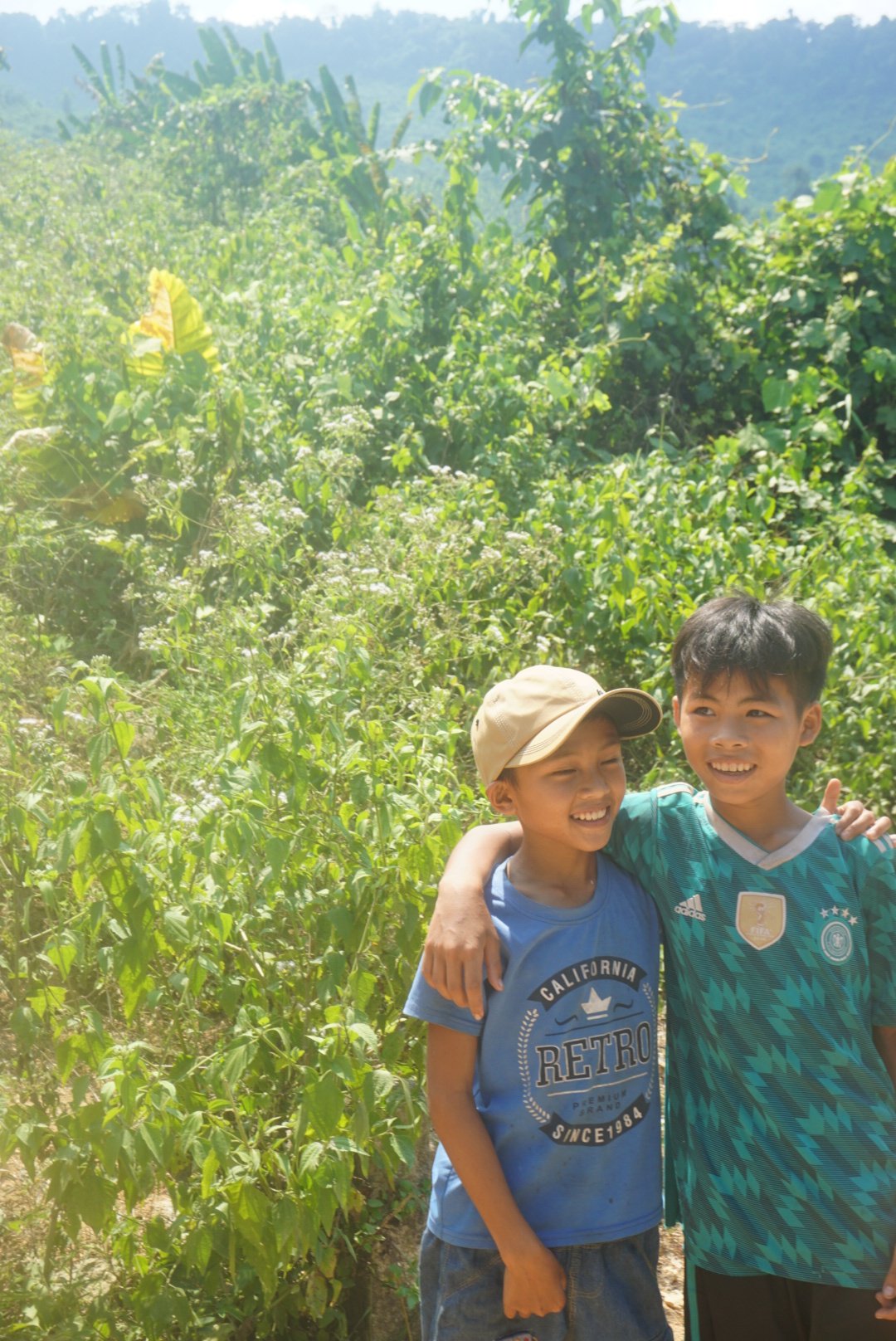 Op de kaart hadden we gezien dat er een etnisch dorp in de bergen was waar je heen kon. Je moest dan wel over een ‘dirt road’ omhoog. Helaas lukte dit niet met twee personen op een automatische scooter, dus we besloten te lopen. We dachten dat het zo’n 45 minuten zou zijn, kijkend op de kaart en vergeleken met de andere afstanden. Na anderhalf uur waren we er echter nog steeds niet. Op dat punt hadden we wel zoiets van, wat als het nu nog maar een kwartier is? We zijn nu al zo’n eind… Ons water begon wel langzaam op te raken en het was bloedheet. Na 2 uur in totaal zagen we eindelijk huisjes in de verte en na nog een kwartier waren we er eindelijk. We konden in huizen kijken, die heel basic waren, en we zagen moestuintjes, kinderen die buiten speelden, moeders die buiten aan het koken waren en vooral veel dorpelingen die gewoon een beetje aan het zitten waren. We probeerden water te vragen, maar ik vertrouwde het niet helemaal en was bang dat de cola-flessen gevuld waren met kraanwater. Uiteindelijk kregen we een blikje energy-drank.