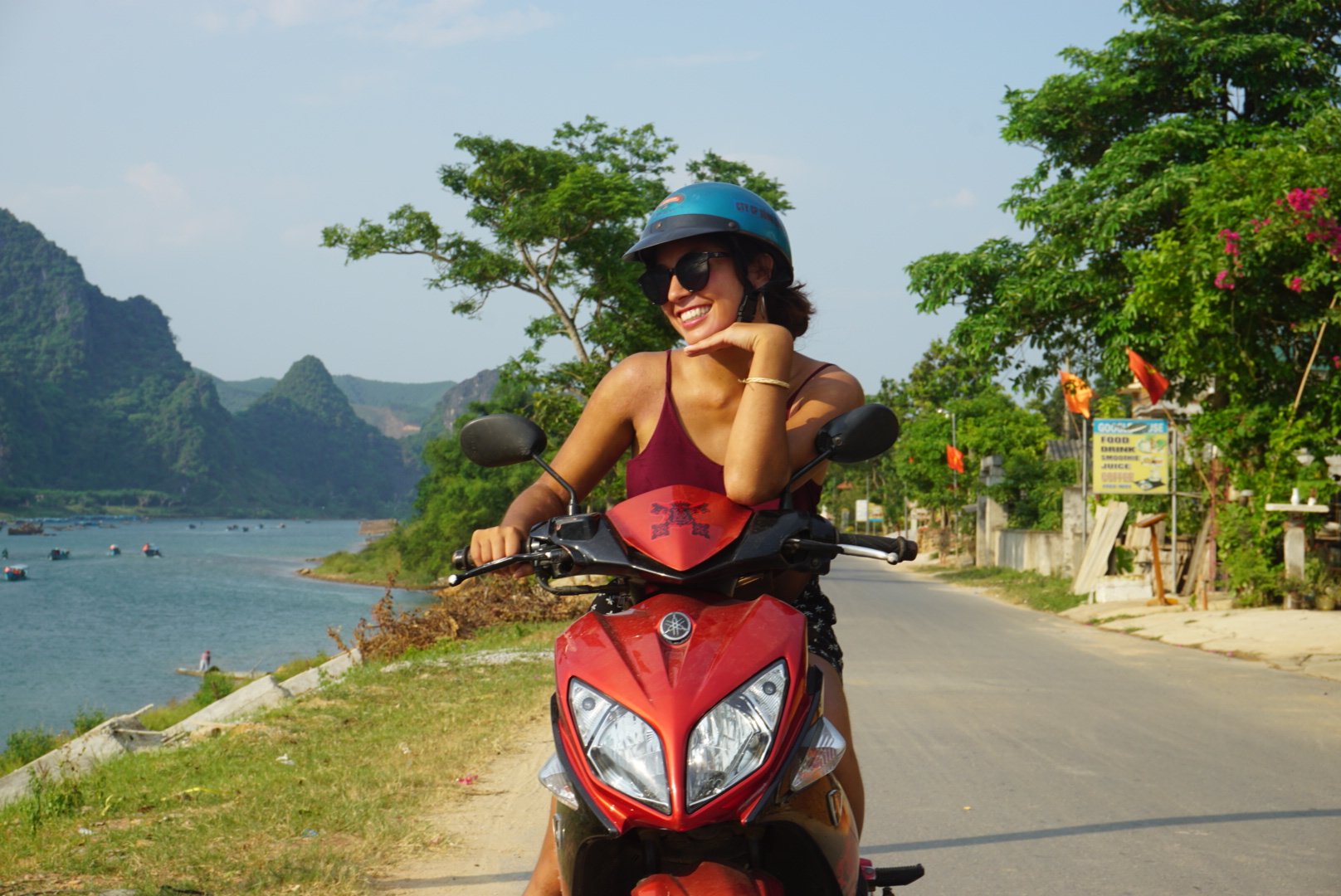 Met de scooter door het park rijden is al een hele ervaring op zich. Het is een heel groen, bergachtig landschap en zo ’s ochtends vroeg zijn veel boeren aan het werk op het platteland. De grotten zijn, zelfs ’s ochtendsvroeg, superdruk. Het is wel de grootste grot die ik ooit heb gezien, dus zeker de moeite waard.