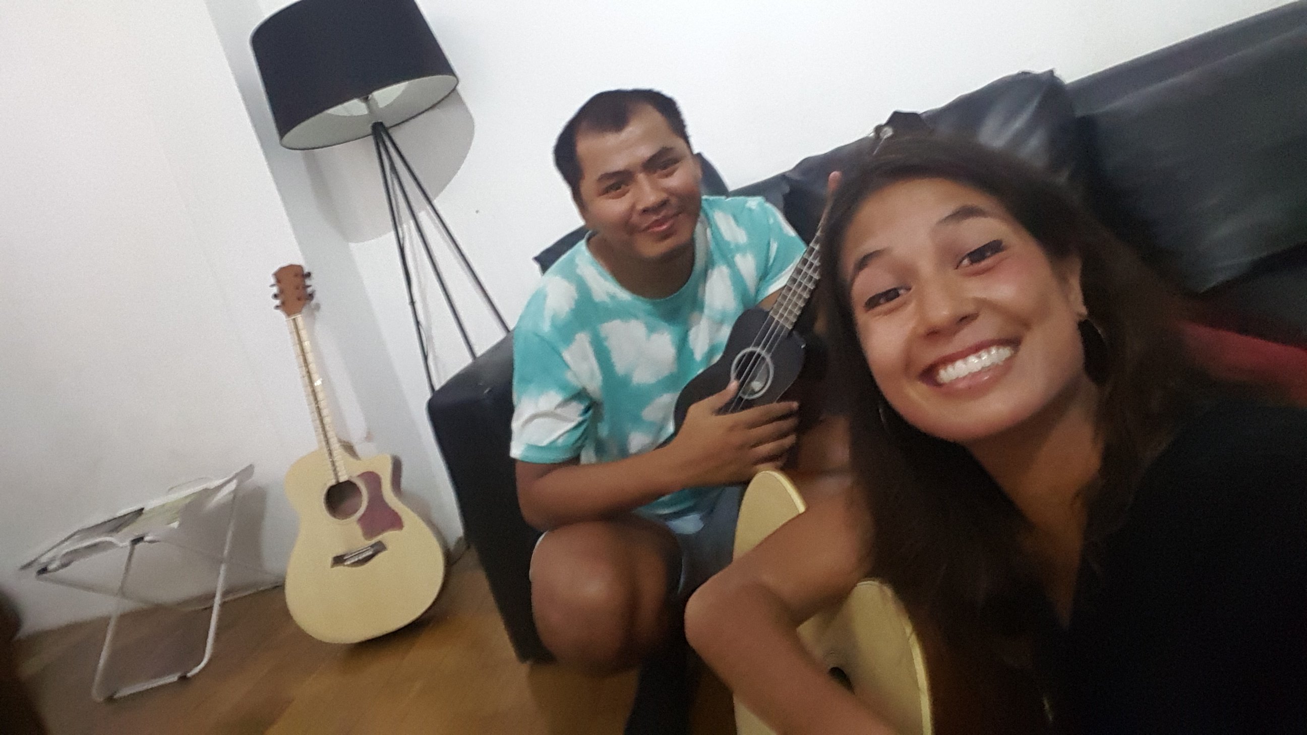 Vanwege het hoogseizoen zaten alle treinen voor de volgende dagen al vol. Amith ging ook richting Yogyakarta dus we hebben samen een minibus en het hostel geboekt. Na een lange rit in de nacht kwamen we eindelijk aan! We werden verwelkomd door een heel grappige Indonesische jongen die Nederlandse muziek voor ons opgezette, liedjes voor ons zong en een paar Nederlandse woordjes kende. We hebben in de middag gitaar gespeeld en gezongen samen!