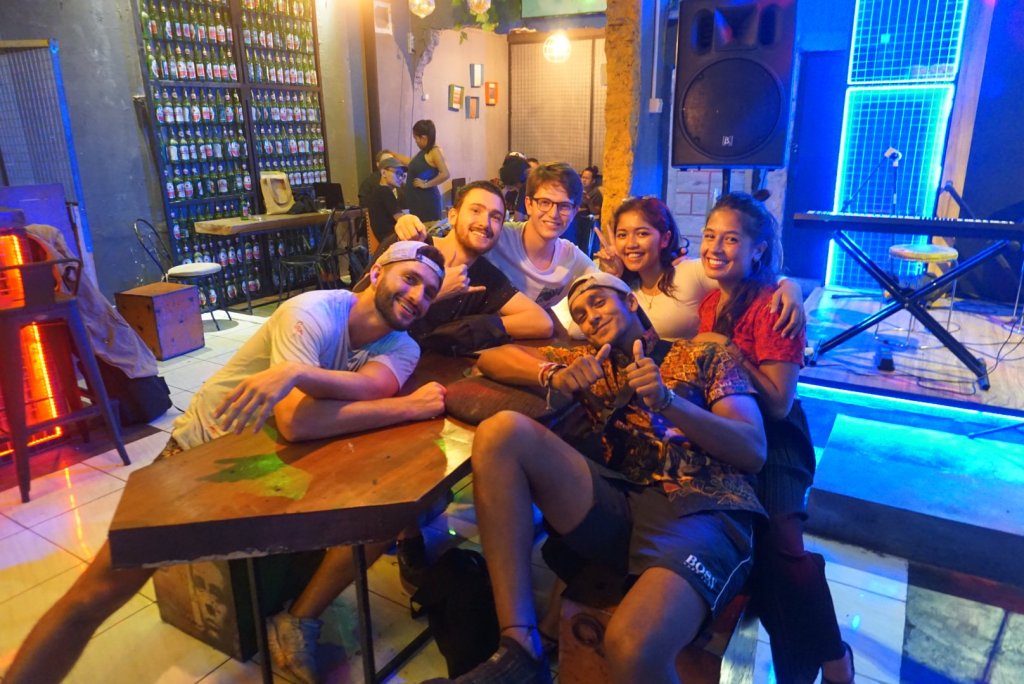 In Yogya was ik twee keer met een hele leuke groep mensen. De eerste keer met Amith, Milad, Elsa, Corby en nog wat Nederlanders. We hebben samen een hele leuke avond gehad! Gedanst en gezongen, en een heel rustige bar tot een heel levendige bar getransformeerd.