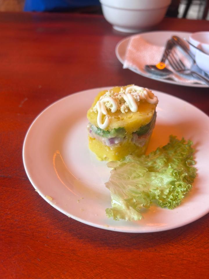 Causa is een kleurrijk Peruaans gerecht dat bestaat uit laagjes zachte, kruidige aardappelpuree — op smaak gebracht met limoensap en aji amarillo — afgewisseld met vullingen zoals tonijnsalade, kip, avocado of groenten. De romige textuur van de aardappel samen met de frisse en hartige vulling maakt elke hap verrassend licht en vol van smaak. Causa wordt vaak opgediend als een kunstig torentje of in mooie plakken.