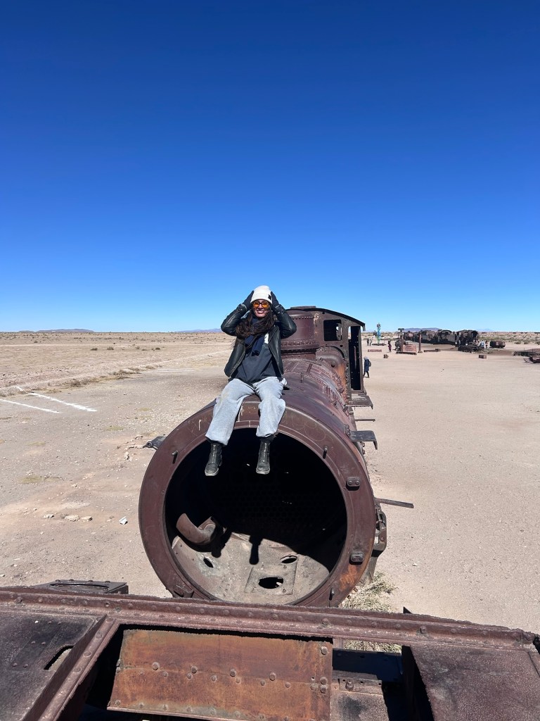 De groep bestaat uit vijf Peruanen plus Sebas en ik. De eerste stop is een treinenkerkhof middenin een woestijnachtige omgeving. Na 1890 stopten Europeanen met het investeren in de treinlijn in Bolivia, en nu is het een bijzonder gezicht in het wijdse landschap waar veel toeristen op afkomen. De tour is inclusief lunch, waar we een korte uitleg krijgen over hoe het zout gebruikt wordt. Kennelijk zijn er landen die Bolivia veel geld bieden om de zoutvlakte over te kopen, maar daar wil het land vooralsnog nog niets van weten. Het zout blijft groeien, en dat blijkt nogal wat waard te zijn.