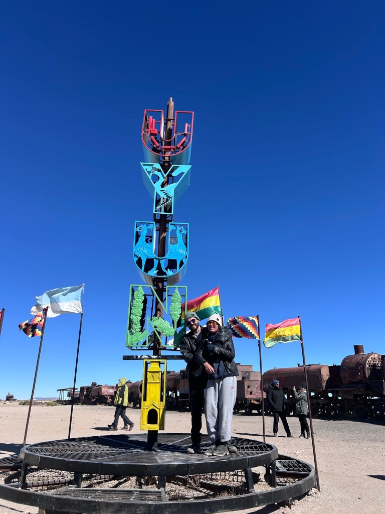 We beginnen onze reis in Uyuni, een klein en koud dorpje in het zuiden van Bolivia. De meeste straten zijn zandweggetjes en het kleine centrum vormt zich rond twee pleinen, die omringd zijn door vele kleine eettentjes en winkeltjes. Aangezien we zonder lokale simkaart of internet mb’s reizen, hadden we in Argentinië al ons eerste hostel in Bolivia geboekt via Booking.com. Inmiddels heb ik daar flink wat punten opgebouwd en daarmee profiteren we vaak van hoge kortingen, soms tot wel vijfendertig dertig procent! We komen pas rond middernacht aan en hebben nog geen Boliviaans geld, dus spreken we af de volgende dag te betalen.