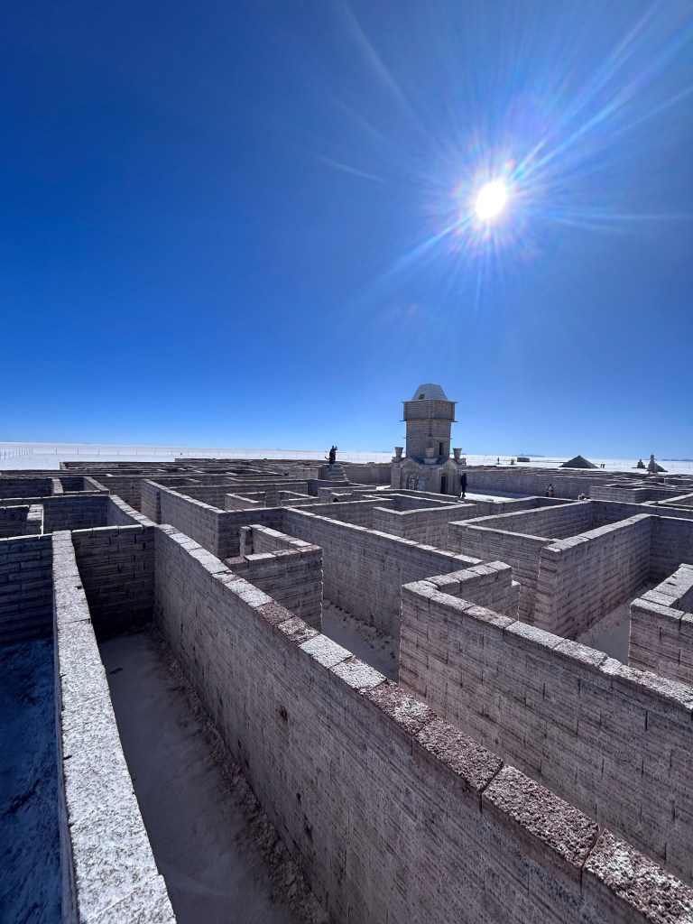 We stoppen nog bij een doolhof en indrukwekkende kunstwerken gemaakt van zout. Nadat Sebas en ik ruim een half uur verdwaald zijn in het doolhof, vinden we gelukkig alsnog een uitweg. We maken nog wat foto’s van de kunstwerken en vervolgen de tour met de rest van de groep.