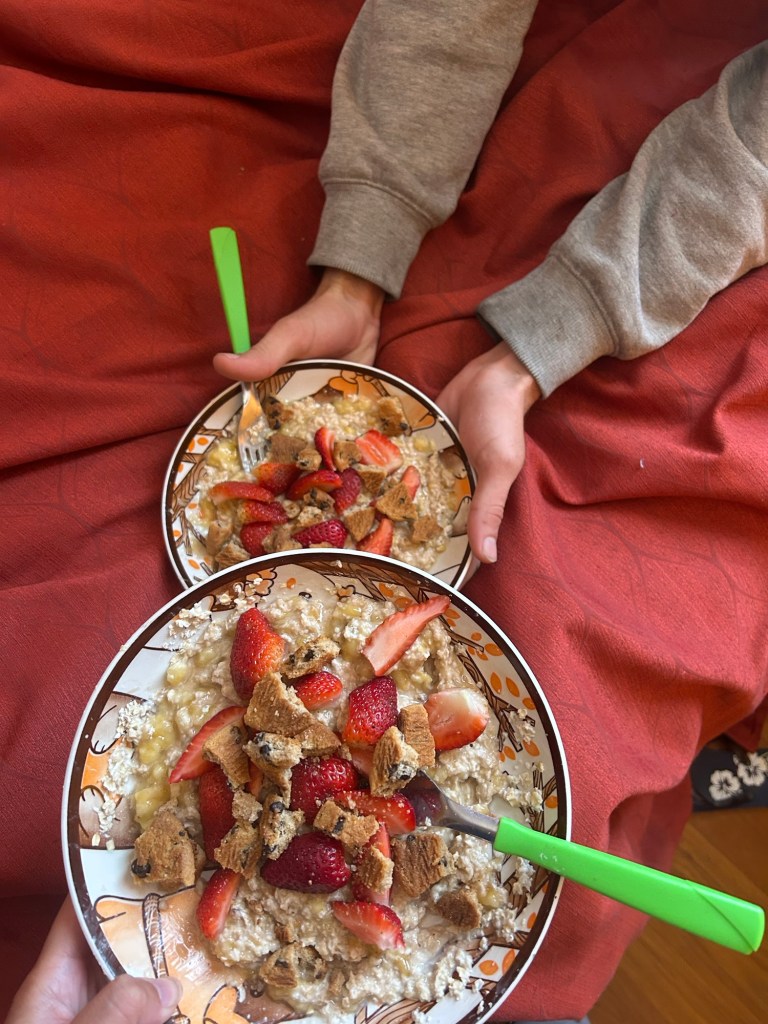 De eerste dag in Uyuni doen we niet veel meer dan een rondje over de markt lopen en wat eten. Voordat we de zoutvlakte bezoeken moeten we eerst even op krachten komen en ik heb ook nog wat werk te doen. De volgende dag wordt er de hele dag zonnig weer voorspeld, ideaal weer om de omgeving te verkennen! Terwijl ik om 8 uur nog aan het werk ben, gaat Sebas naar buiten om bananen en havermout te scoren. Hij komt terug met de mededeling dat we om half 11 met een tour mee gaan, hij heeft er eentje gevonden voor een heel goede prijs en er waren nog precies twee plekken vrij in de jeep.