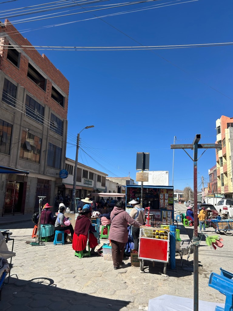 De grote zoutvlakte, panfluiten en poncho’s: dat waren de paar dingen die mij bekend waren over Bolivia. Sebas vertelde me daarnaast dat wc’s met stromend water pas zo’n twintig jaar geleden zijn aangelegd op de meeste plekken, voor die tijd was een gat in de grond de norm. Dat geeft wel een beetje een idee hoe het is gesteld met de moderne ontwikkeling van het land. Ondanks het gebrek aan luxe en moderne comforts, is mijn eerste indruk positief! Er zijn weinig plekken waar de inheemse cultuur nog zo zichtbaar is als hier.